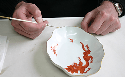 Die Malerei ist nicht nur im Bereich der Restaurierung von Bedeutung, sondern stellt auch allein eine wichtige Leistung von Porzellan Reparatur dar. Dazu gehört sowohl die Farbauffrischung als auch die Aufbringung von neuen Malereien nach Wunsch.